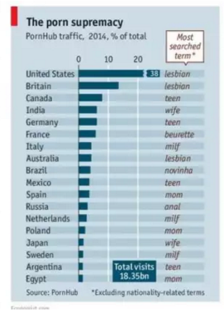 D’un autre côté, la statistique globale fournie il y a quatre ans par Pornhub, le principal fournisseur de sexualité en boîte,