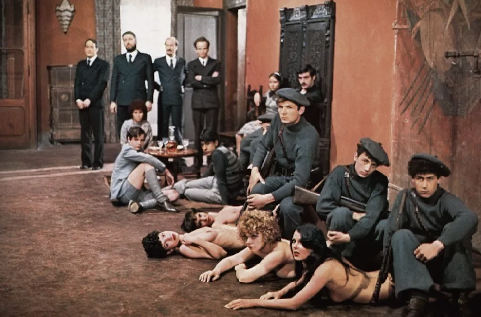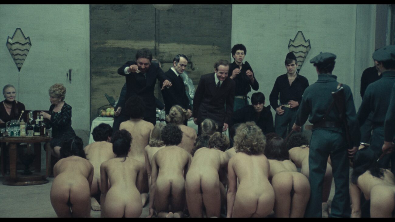 Les photos qui illustrent cette page sont toutes tirées de ce film, l’une des œuvres-limites qui paraissent parfois dans les arts comme des astres noirs dans un ciel enflammé. Je l’ai vu dans une salle qui n’existe plus, du moins tel qu’il était, la Pagode (rue de Babylone) et j’ai souvenir de ces homosexuels venus en couple ou en groupe pour Pasolini et quittant l’un après l’autre le cinéma, impossible de se confronter à ce que montrait le cinéaste. C’est bien sûr un film que notre modernité peureuse ne se risquera pas à revoir, ou seulement en catimini, le seul acquis réel depuis les années 1970 étant une épaisse couverture d’hypocrisie jetée sur les désirs — qui sont toujours là et toujours les mêmes, n’en déplaise aux féministes, aux wokes et aux imbéciles de toutes farines.