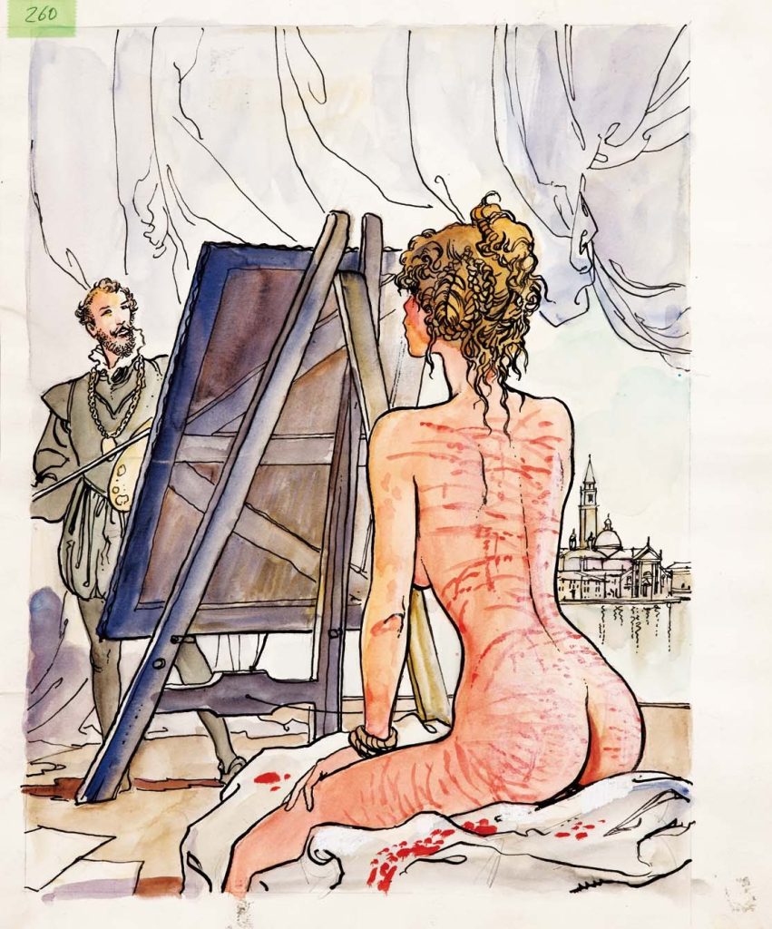 Quant au dessin de Milo Manara qui clôt mon exercice, il témoigne d’une constante dans la scène de domination : le bonheur d’avoir été marquée, et de devenir, dans un second temps, le modèle de son maître. Et, au fond, la pièce maîtresse de l’artiste.